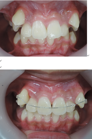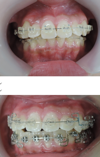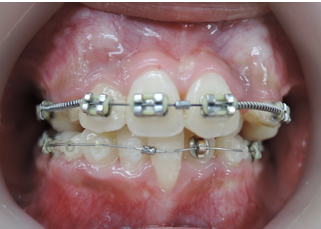 咬合高径の改善、前歯の審美的改善のためにMEAW法(マルチループ)を使用しています。
