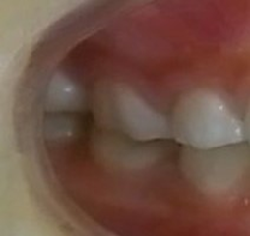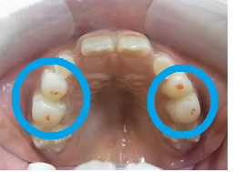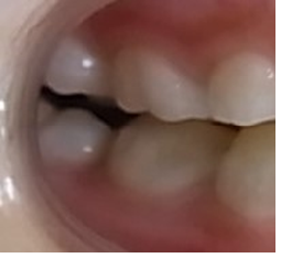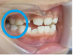 乳臼歯にレジンを盛る事で第一大臼歯の咬み合わせに隙間が出来ました。