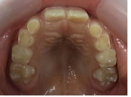 先ずは、写真の様に矯正装置を装着して上顎骨の拡大を始めます。