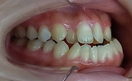 MEAW法(マルチループ)の治療を1年ぐらい続けていくと前歯の被蓋ができ、下顎前突(受け口)が改善してきます。